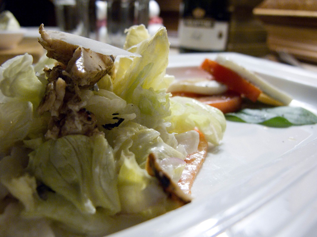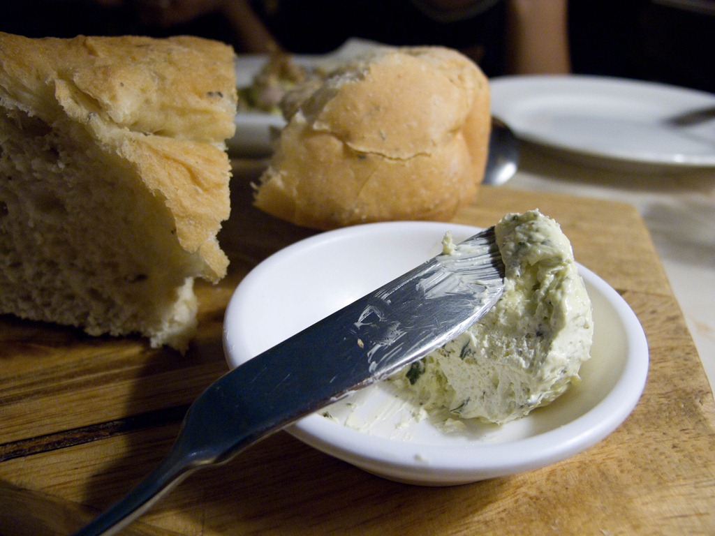 今天享用的是雙人套餐,包括沙拉,手工麵包,濃湯,都是兩人份;另外主餐我們選了排餐(菲力骰子)及海鮮義大利麵,飯後的甜點兩人不約而同選擇聖代,飲料部分我則是咖啡,太太則選了茶