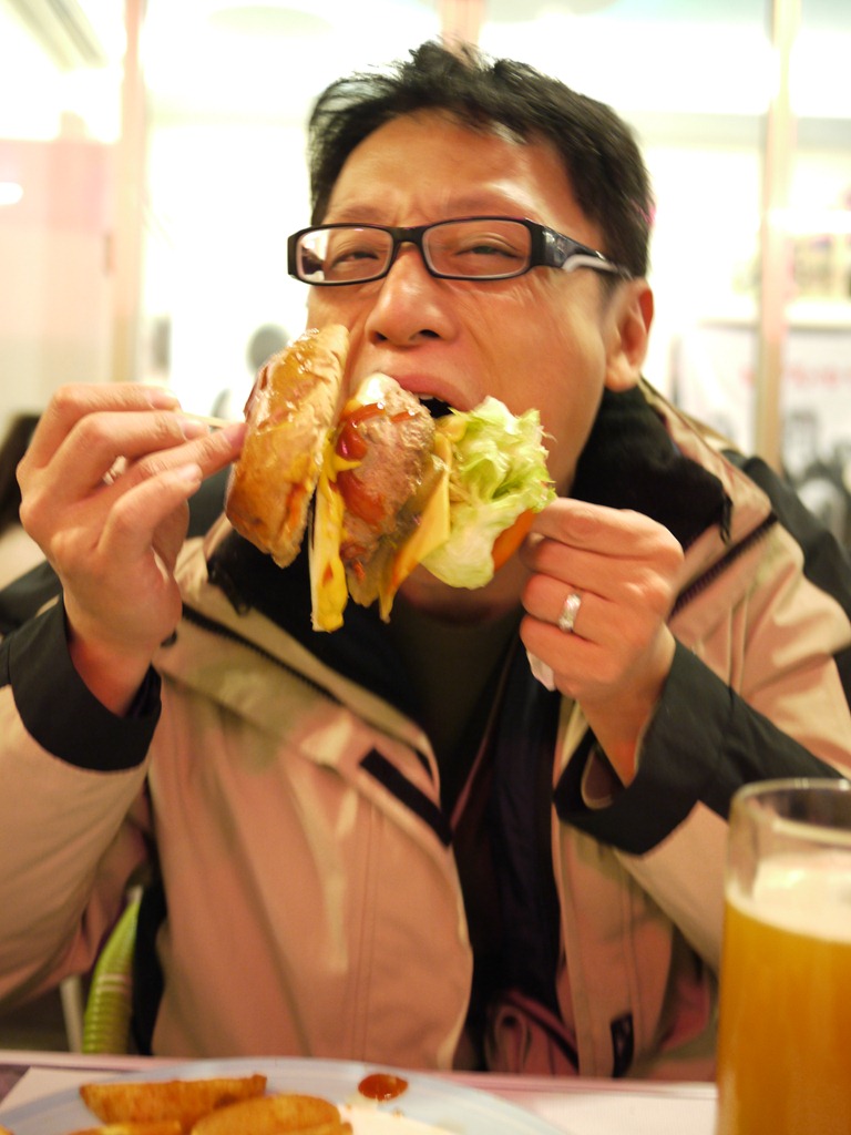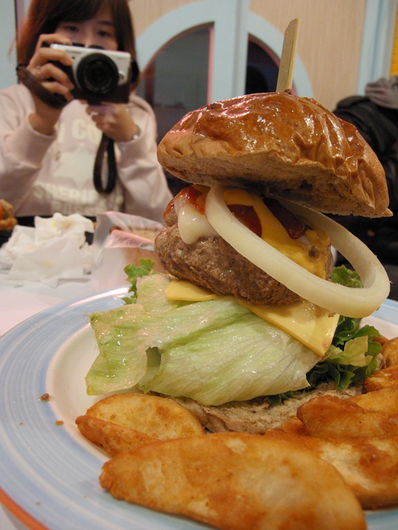 吃這兒漢堡恐怕得不計形象,如果情侶剛交往或熱戀中,來這可能會手足無措不知該從何吃起!接下來是我的半獸人撒尿牛堡,比吃不飽更大一號XD